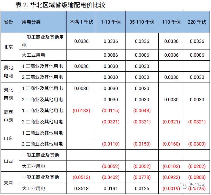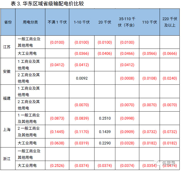 各省新舊輸配電價的主要變化可總結(jié)為: