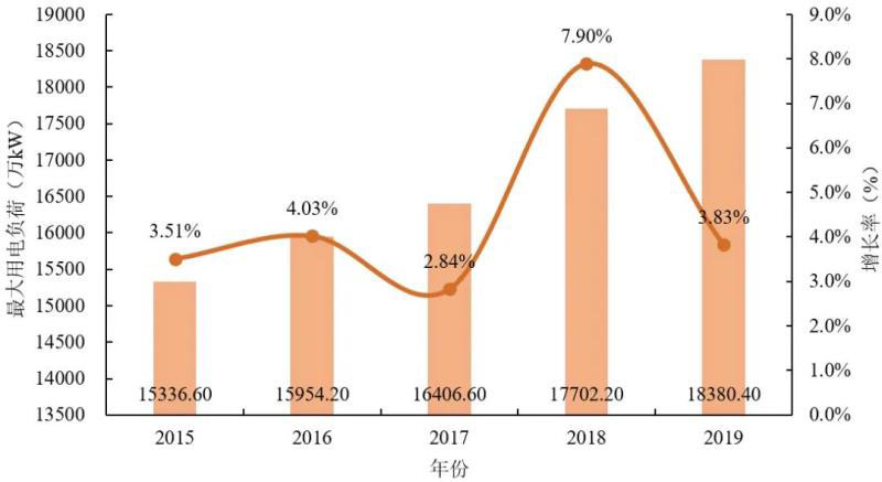 圖6 2015-2019年印度電網(wǎng)最大用電負荷