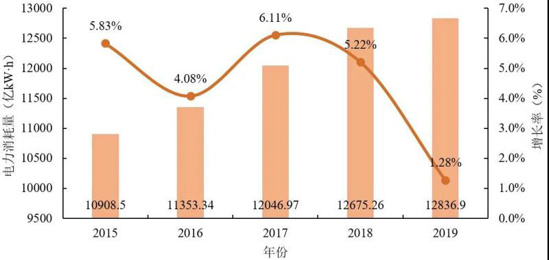 印度用電量繼續(xù)增長,增速明顯放緩,供需矛盾依然突出。2019財年,印度全社會用電量達到12836.9億kW?h,同比增長1.28%,較上年降低3.9個百分點,電量缺口仍達到65.66億kW?h。分地區(qū)看,北部、西部、南部地區(qū)電網(wǎng)用電量大,占全社會用電量比例達87.4%。北部地區(qū)電網(wǎng)用電量缺口最大,達到55.66億kW?h,占全部電量缺口的84.8%。2015-2019年印度用電量如圖5所示。