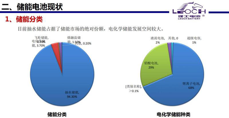 這是我們儲能電池現(xiàn)狀。抽水儲能占的比例是94%,電化學(xué)儲能站的比例比較小,但另外一個方向也說明電化學(xué)儲能發(fā)展空間很大。右邊的圖,鋰電池在電化學(xué)儲能里的比例越來越高,我這個還是2018年的數(shù)據(jù),上午劉秘書長講鋰電池目前達(dá)到80%多,鉛酸還在下降。