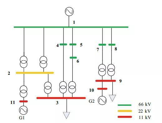 ? 圖3 11節(jié)點電力系統(tǒng)