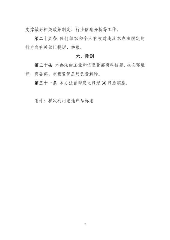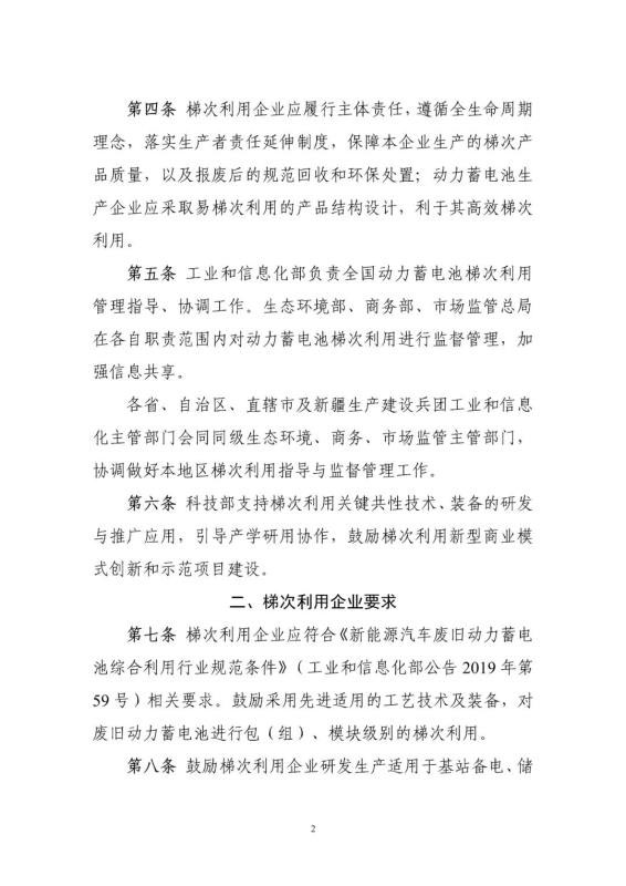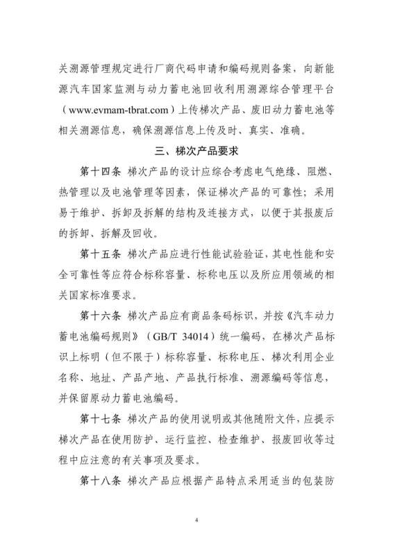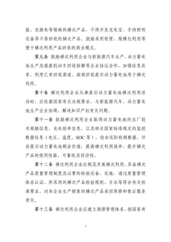 為加強新能源汽車動力蓄電池梯次利用管理,提升資源綜合利用水平,保障梯次利用電池產(chǎn)品的質(zhì)量,我們組織編制了《新能源汽車動力蓄電池梯次利用管理辦法》?,F(xiàn)將征求意見稿向社會公開征求意見,如有意見或建議,請于2020年11月8日前反饋工業(yè)和信息化部節(jié)能與綜合利用司。