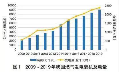 作為清潔低碳化石能源,天然氣發(fā)電的環(huán)境效益及其在能源發(fā)展格局中的重要作用越來越受到關(guān)注。2015年電力體制改革和油氣市場逐步寬松以來,我國天然氣發(fā)電快速發(fā)展,在政策引導下,裝機容量從2014年的5697萬千瓦發(fā)展到2019年的9022萬千瓦,占全國發(fā)電裝機總量的4.49%,發(fā)電裝機年均增長31.67%。發(fā)電量為2362億千瓦時,占全國總發(fā)電量的3.22%,年均達到增長35.43%。天然氣發(fā)電裝機容量年均增速和電量增速,均遠高于全國發(fā)電裝機容量年均增速和電量增速(見圖1)。