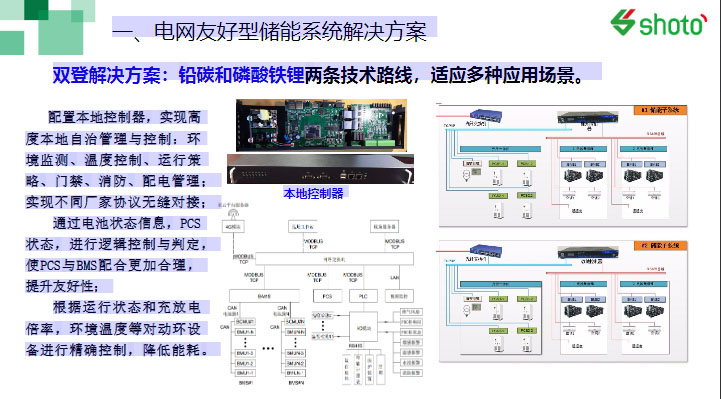 三是鉛碳和鋰電兩條發(fā)展路線,適應(yīng)多種應(yīng)用場景。數(shù)據(jù)的處理和數(shù)據(jù)通道的順暢是影響儲能系統(tǒng)快速響應(yīng)包括安全的重要方面。我們在傳統(tǒng)的BMS管控基礎(chǔ)上,增加了一個本地的控制器,來實現(xiàn)運行環(huán)境、設(shè)備能效管理和運行策略的優(yōu)化,達到高度自治的目標。這是采用嵌入式開發(fā)平臺,做整個儲能SOC的冗余和校驗,達到整個系統(tǒng)可靠性的目的。同時把一些PCS、BMS包括溫度、運行工況、狀態(tài)信息做融合,數(shù)據(jù)清洗、過濾,提供精準、有限信息。