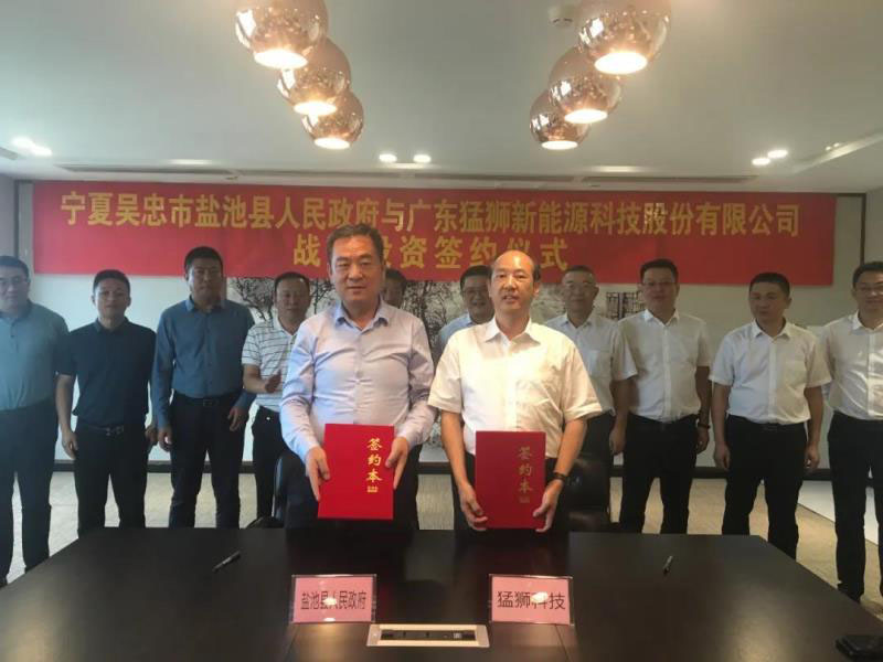 10月12日,廣東猛獅新能源科技股份有限公司(以下簡稱“猛獅科技”)與寧夏回族自治區(qū)鹽池縣人民政府(以下簡稱“鹽池縣”)簽署了廣東猛獅新能源科技股份有限公司新能源裝備制造及研究應(yīng)用一體化綜合示范基地項目協(xié)議書。吳忠市市委常委、鹽池縣縣委書記滑志敏、副縣長張晨,猛獅科技董事長陳樂伍、總裁王少武等出席了簽字儀式。張晨副縣長和郝身健副總裁代表各自單位簽署了合作框架協(xié)議。