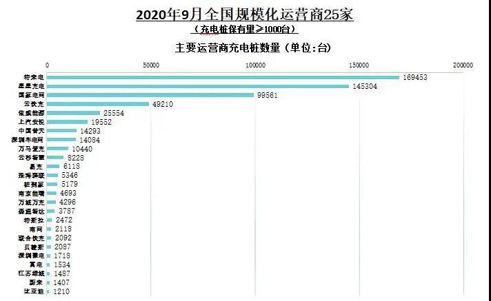 截止到2020年9月,全國(guó)充電運(yùn)營(yíng)企業(yè)所運(yùn)營(yíng)充電樁數(shù)量超過(guò)1萬(wàn)臺(tái)的共有9家,分別為:特來(lái)電運(yùn)營(yíng)16.9萬(wàn)臺(tái)、星星充電運(yùn)營(yíng)14.5萬(wàn)臺(tái)、國(guó)家電網(wǎng)運(yùn)營(yíng)10萬(wàn)臺(tái)、云快充運(yùn)營(yíng)4.9萬(wàn)臺(tái)、依威能源運(yùn)營(yíng)2.6萬(wàn)臺(tái)、上汽安悅運(yùn)營(yíng)2萬(wàn)臺(tái)、中國(guó)普天運(yùn)營(yíng)1.4萬(wàn)臺(tái)、深圳車電網(wǎng)運(yùn)營(yíng)1.4萬(wàn)臺(tái)、萬(wàn)馬愛(ài)充運(yùn)營(yíng)1萬(wàn)臺(tái)。這9家運(yùn)營(yíng)商占總量的90.3%,其余的運(yùn)營(yíng)商占總量的9.7%。