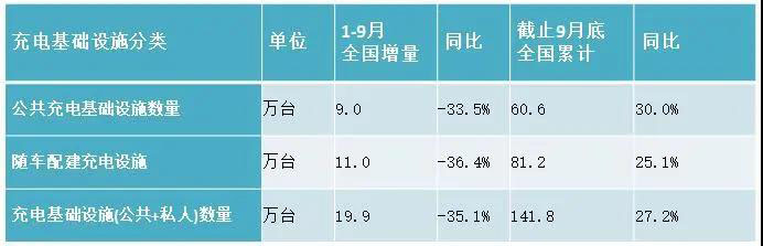 2020年1-9月,充電基礎(chǔ)設(shè)施增量為19.9萬(wàn)臺(tái),雖然近兩個(gè)月增量有所回升,但由于公共充電基礎(chǔ)設(shè)施上半年增量不高,且隨車配建充電設(shè)施依然較少,同比依然下降35.1%。