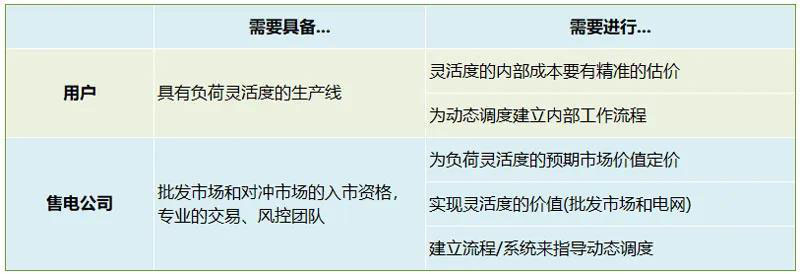 2.工業(yè)和大型商業(yè)用戶通常青睞專門為自身用電特色或商業(yè)模式定制的產(chǎn)品,而且可能愿意接受較大尺度的市場風險。此外,一些工商用戶的設(shè)備具有一定的運行靈活度,可以將工業(yè)用戶生產(chǎn)線的“靈活度”,在現(xiàn)貨市場“變現(xiàn)”,或提供給“調(diào)度”能力。