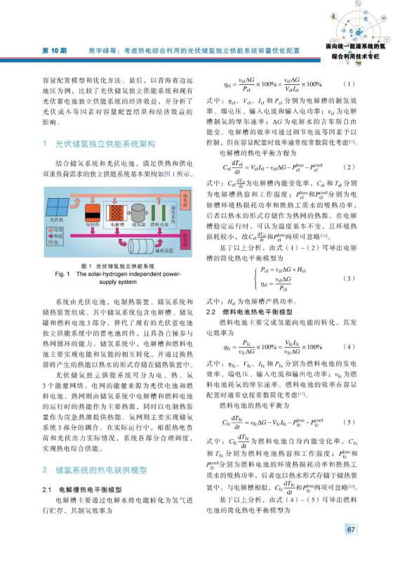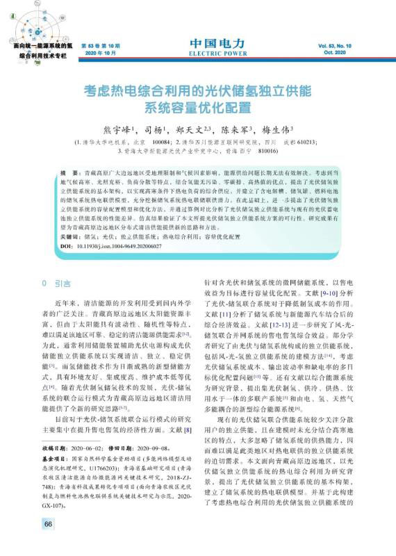 熊宇峰, 司楊, 鄭天文, 等. 考慮熱電綜合利用的光伏儲氫獨立供能系統(tǒng)容量優(yōu)化配置[J]. 中國電力, 2020, 53(10): 66-73.