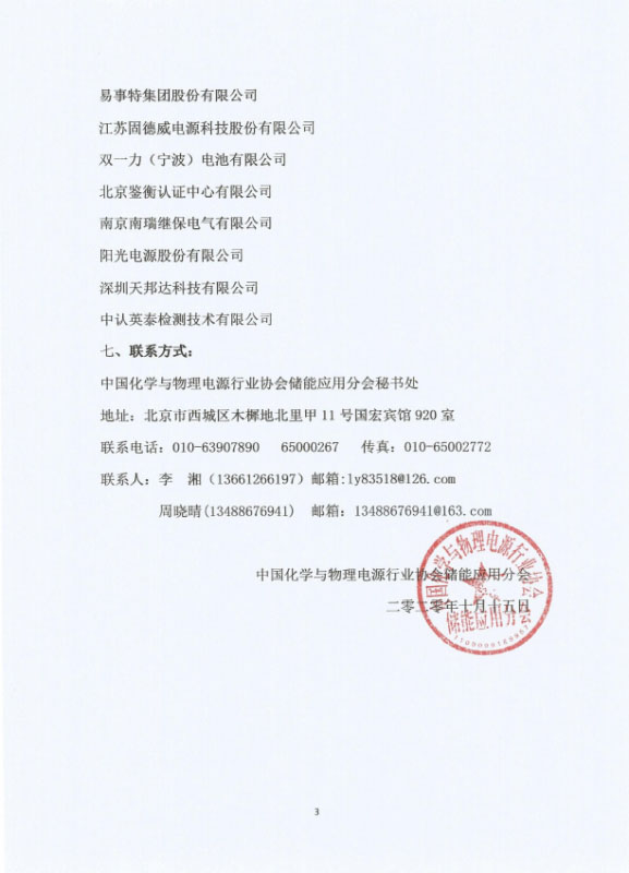 中國(guó)化學(xué)與物理電源行業(yè)協(xié)會(huì)儲(chǔ)能應(yīng)用分會(huì)秘書處