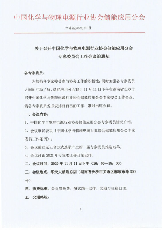關(guān)于召開中國化學(xué)與物理電源行業(yè)協(xié)會儲能應(yīng)用分會專家委員會工作會議的通知