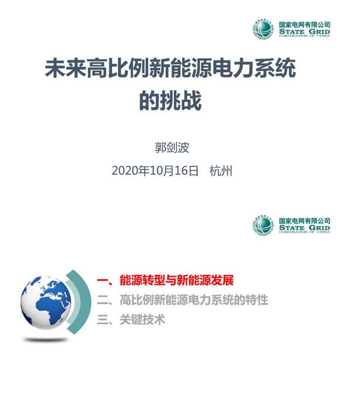 2020年10月16電力系統(tǒng)發(fā)展方向暨學(xué)術(shù)方向研討會(huì)在杭州開(kāi)幕。會(huì)上,國(guó)家電網(wǎng)有限公司副總工程師郭劍波作了題為“未來(lái)高比例能源電力系統(tǒng)的挑戰(zhàn)”的專(zhuān)題報(bào)告。小編征得專(zhuān)家同意,在此分享報(bào)告PPT,歡迎品讀。