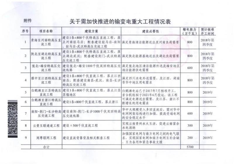 事實(shí)上,國(guó)家能源局在2018年曾下發(fā)文件《關(guān)于加快推進(jìn)一批輸變電重點(diǎn)工程規(guī)劃建設(shè)工作的通知》,新批復(fù)7條特高壓輸電線路,并要求加快相關(guān)線路的工程建設(shè)。青海至河南、陜西至湖北特高壓直流工程便在此次規(guī)劃中。