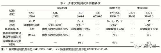 外部火燒試驗(yàn)的目的是在電池或車輛暴露于高溫或外火焰時(shí),評(píng)估其爆炸的危險(xiǎn)?;鹪纯赡苁擒囕v本身或附近車輛泄漏的燃料引起的。表7列出了測(cè)試參數(shù),主要描述了3種類型的測(cè)試: