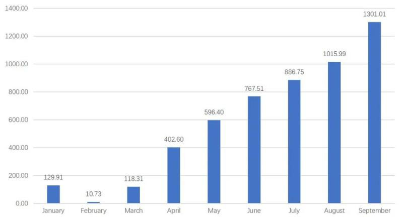 9月份戶用光伏項目新增1301MW,再創(chuàng)新高。