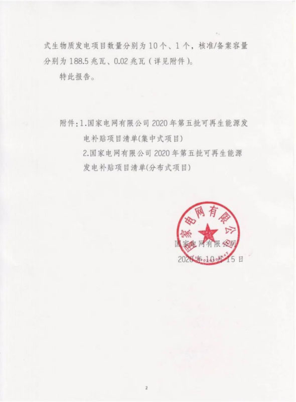 關(guān)于公布2020年第五批可再生能源發(fā)電