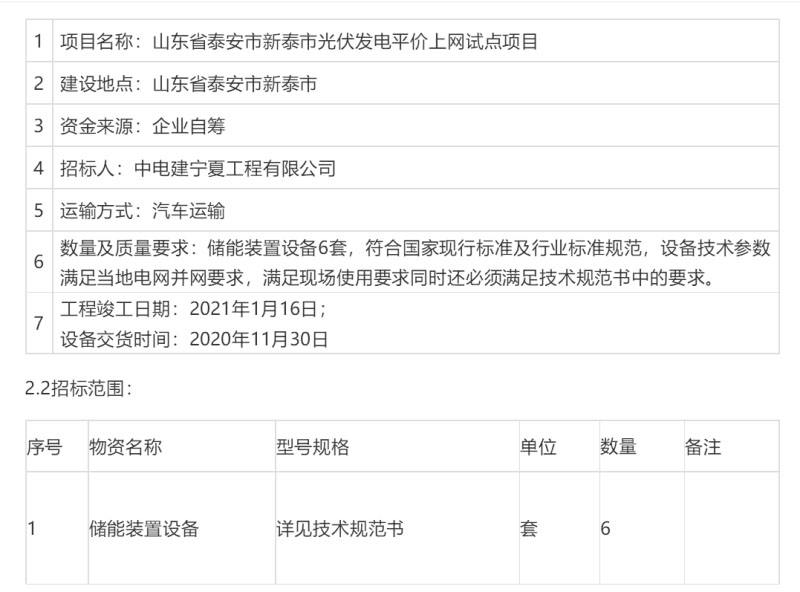 中國(guó)電建山東電建公司山東省泰安市新泰市光伏發(fā)電項(xiàng)目?jī)?chǔ)能裝置設(shè)備采購(gòu)項(xiàng)目競(jìng)標(biāo)公告
