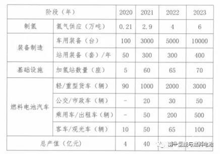 長(zhǎng)治市燃料電池汽車產(chǎn)業(yè)主要發(fā)展目標(biāo)