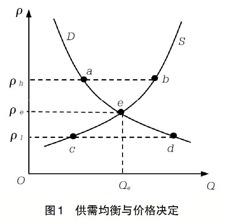 此外,在現(xiàn)貨環(huán)境下的發(fā)電成本補(bǔ)償、阻塞費(fèi)用等等,也會(huì)帶來(lái)不平衡資金問(wèn)題。以上種種不平衡資金問(wèn)題產(chǎn)生的機(jī)理是不一樣的,但總體來(lái)說(shuō)都是供方和需方電價(jià)或電量的差異所導(dǎo)致的。我們通常采用微觀(guān)經(jīng)濟(jì)學(xué)中經(jīng)典的供給與需求分析來(lái)說(shuō)明市場(chǎng)機(jī)制及市場(chǎng)價(jià)格的決定。在圖1中,假定決定供求的因素除商品自身的價(jià)格外其余均為已知,因而供求狀況確定。圖中曲線(xiàn)S表示供給曲線(xiàn),曲線(xiàn)D表示需求曲線(xiàn)。由圖可見(jiàn),曲線(xiàn)S和D在e點(diǎn)相交,與e點(diǎn)相對(duì)應(yīng)的價(jià)格pe就是均衡價(jià)格,或者叫市場(chǎng)出清價(jià)格。在此價(jià)格水平上,買(mǎi)方愿意并能夠購(gòu)買(mǎi)的數(shù)量與賣(mài)方愿意并能夠供給的數(shù)量恰好相等,此時(shí)不會(huì)產(chǎn)生任何不平衡資金。所謂市場(chǎng)機(jī)制就是指在一個(gè)自由市場(chǎng)里能使價(jià)格得以變化一直達(dá)到出清(即供給量與需求量相等)的趨勢(shì)。但實(shí)際電力市場(chǎng)遠(yuǎn)比這更加復(fù)雜,這就導(dǎo)致不平衡資金問(wèn)題的出現(xiàn)。處于現(xiàn)貨市場(chǎng)連續(xù)結(jié)算試運(yùn)行階段的山東電力市場(chǎng)的不平衡資金的構(gòu)成是復(fù)雜的,除現(xiàn)貨所帶來(lái)的固有的不平衡資金問(wèn)題外,發(fā)用電計(jì)劃放開(kāi)不同步,即優(yōu)先發(fā)電電量與優(yōu)先購(gòu)電電量不匹配應(yīng)屬主要原因。而東北區(qū)域電力市場(chǎng)不平衡資金問(wèn)題的成因主要是市場(chǎng)化的發(fā)電上網(wǎng)電價(jià)和固定的銷(xiāo)售電價(jià)的價(jià)差所導(dǎo)致的。中長(zhǎng)期交易偏差考核所產(chǎn)生的產(chǎn)生不平衡資金則是人為設(shè)置偏差考核標(biāo)準(zhǔn)、收支沒(méi)有閉環(huán)所致。