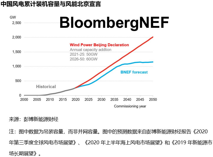 風(fēng)電行業(yè)大會上秀出實(shí)力,并展現(xiàn)出擴(kuò)大風(fēng)電裝機(jī)規(guī)模的強(qiáng)烈愿望。一份由風(fēng)電行業(yè)高管共同簽署的《風(fēng)電北京宣言》要求政府須為風(fēng)電留出發(fā)展空間“保證年均新增裝機(jī)5000萬千瓦以上。2025年后,中國風(fēng)電年均新增裝機(jī)容量應(yīng)不低于6000萬千瓦,到2030年至少達(dá)到8億千瓦,到2060年至少達(dá)到30億千瓦。”而在現(xiàn)實(shí)中,中國風(fēng)電年度新增裝機(jī)規(guī)模的最高紀(jì)錄是2015年的3000萬千瓦;2020年上半年風(fēng)電累計(jì)并網(wǎng)規(guī)模為2.17億千瓦,可見宣言目標(biāo)之高。