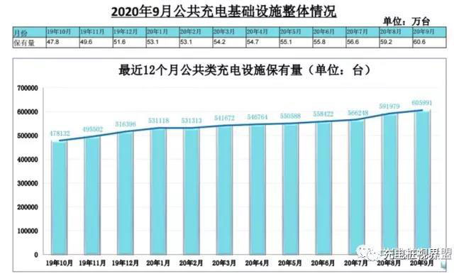 根據中國電動充電基礎設施促進聯盟發(fā)布的2020年9月充電樁運營數據,公共充電基礎設施整體上維持增長,9月繼續(xù)保持較快增長。具體來看,據數據顯示,截至2020年9月,聯盟內成員單位總計上報公共類充電樁60.6萬臺,其中交流充電樁35.0萬臺、直流充電樁25.5萬臺、交直流一體充電樁488臺。從2019年10月到2020年9月,月均新增公共類充電樁約1.2萬臺。2020年9月比8月公共充電樁增加1.4萬臺,9月同比增長30.0%,隨著電動汽車銷量的持續(xù)向好,公共充電樁的新建數量也在逐漸增多。