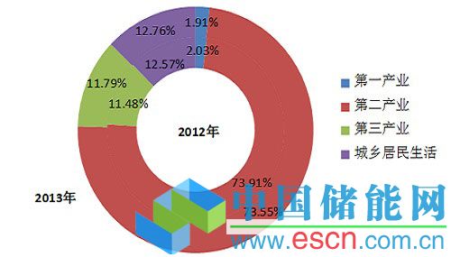 圖1 2012、2013年電力消費(fèi)結(jié)構(gòu)圖