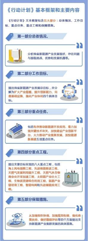 《行動計劃》是廣東省20個戰(zhàn)略性支柱產(chǎn)業(yè)集群和新興產(chǎn)業(yè)集群行動計劃中的其中一個?!缎袆佑媱潯匪傅男履茉串a(chǎn)業(yè)主要包括核能、風(fēng)能、天然氣及其水合物、太陽能、氫能、生物質(zhì)能、地?zé)崮?、海洋能、智能電網(wǎng)、儲能等領(lǐng)域。《行動計劃》內(nèi)容涵蓋了總體情況、工作目標(biāo)、重點任務(wù)、重點工程和保障措施五個部分。