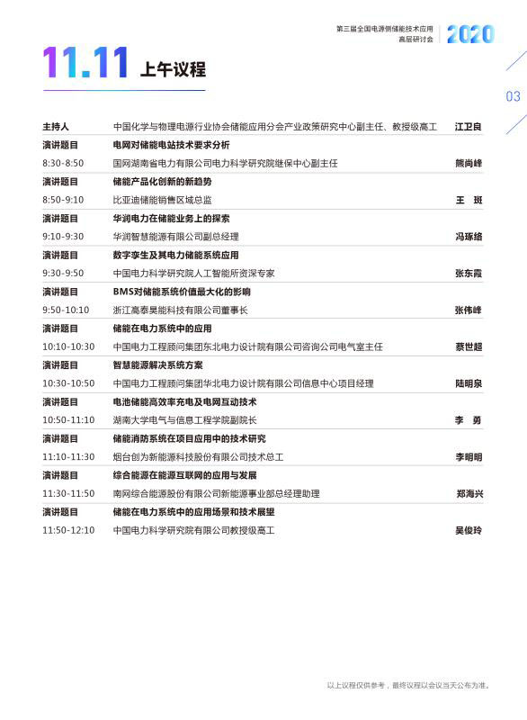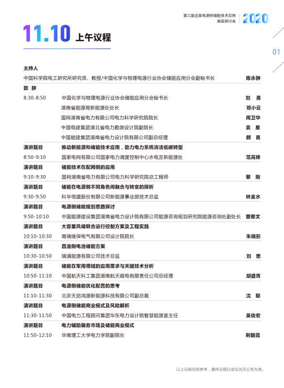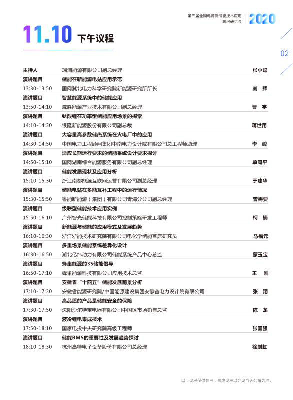 本次高層研討會以“引領(lǐng)電源側(cè)儲能工程應(yīng)用 推進儲能產(chǎn)業(yè)高質(zhì)量發(fā)展”為主題,將邀請儲能領(lǐng)域?qū)<覍W者、政府主管部門領(lǐng)導、新能源業(yè)主單位、發(fā)電集團、設(shè)計院、電網(wǎng)公司、系統(tǒng)集成商以及投融資機構(gòu)企業(yè)負責人及相關(guān)產(chǎn)業(yè)代表等共同參與探討和交流。以下為主要議程:
