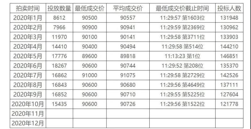 上海個(gè)人牌照1-10月拍賣(mài)情況