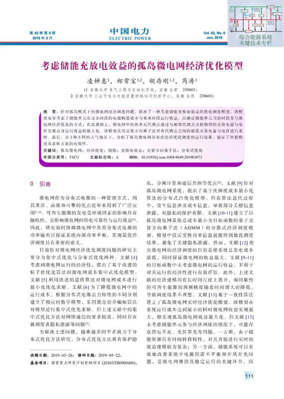 凌嬋惠, 鄭常寶, 胡存剛, 等. 考慮儲能充放電效益的孤島微電網(wǎng)經(jīng)濟(jì)優(yōu)化模型[J]. 中國電力, 2019, 52(6): 111-120.