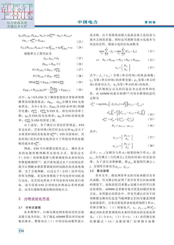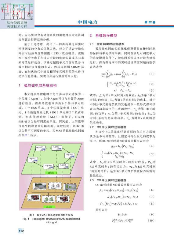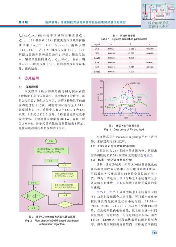 摘要:針對孤島模式下的微電網(wǎng)經(jīng)濟(jì)調(diào)度問題,提出了一種考慮儲能充放電效益的優(yōu)化調(diào)度模型。該模型充分考慮了儲能單元在過去時段的電能購置成本與未來時段運行效益,以確定儲能單元當(dāng)前時段參與微電網(wǎng)經(jīng)濟(jì)優(yōu)化的方式;在此基礎(chǔ)上,微電網(wǎng)中的各單元代理點通過與相鄰代理點交換期望的交易電量與電價實現(xiàn)自身運行效益的最大化。該模型采用交替方向乘子法對各代理點之間的最優(yōu)交易電量與電價進(jìn)行求解。最后,在3種不同的天氣場景下,分析了孤島微電網(wǎng)分布式經(jīng)濟(jì)優(yōu)化調(diào)度的運行結(jié)果,驗證了所提模型及求解方法的有效性。