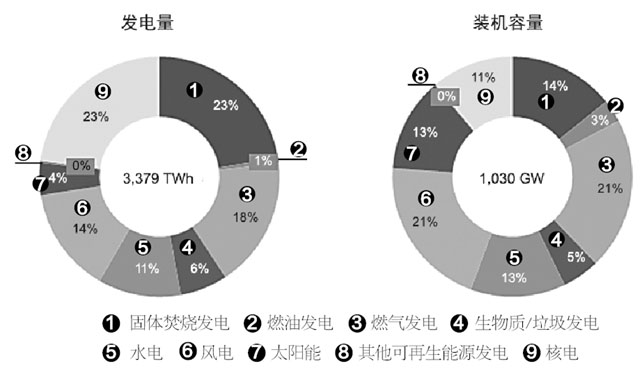 圖2 2020年歐盟發(fā)電量和發(fā)電裝機容量(預(yù)估)