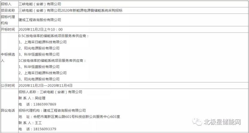三峽電能(安徽)有限公司2020年新能源電源側(cè)儲能系統(tǒng)采購中標(biāo)公示