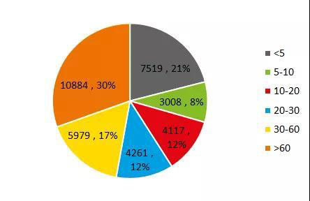 全國的水電機組中,單機超過60萬千瓦的占30%,超過1億千瓦;30-60萬千瓦之間的占17%,接近六千萬千瓦;20-30萬千瓦的占12%,超過四千萬千瓦;10-20萬千瓦的占12%,超過四千萬千瓦;5-10萬的占8%,大概三千萬千瓦;5萬以下小機組占21%,7519萬千瓦。