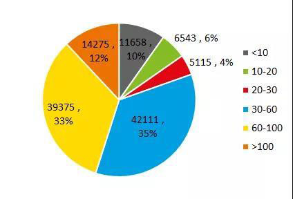 全國的火電機組中,單機超過100萬千瓦的占12%,為14275萬千瓦,所以全國百萬千瓦機組大概能有140臺左右。60-100萬千瓦的機組占33%,接近4億千瓦,按照60萬機組算,估么著能有650臺左右;30-60萬千瓦之間的占35%,有4.2億千瓦,按照30萬機組算,估摸著能有1400臺;20-30萬千瓦的占4%,五千萬千瓦左右;10-20萬千瓦的占6%,6543萬千瓦;10萬以下小機組占10%,1.2億千瓦。