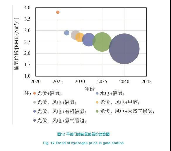 如圖12所示,隨著規(guī)模的擴大,氫能的綜合成本、門站氫價在逐步下降,隨著氫能規(guī)模的上升和制氫儲氫成本下降,有望在未來低于2.0 RMB/Nm3。