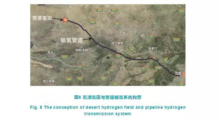 荒漠氫田是以制氫為目的的光伏、風(fēng)電和電解制氫、管道輸氫系統(tǒng),包括:400 km2的荒漠光伏電站及附屬系統(tǒng),80萬t/a的電解水系統(tǒng),和100萬t/a、2 000 km集氣高壓輸氫管線。