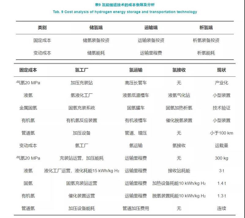 每個部分又分為固定成本和變動成本,共同構(gòu)成供應(yīng)鏈的六個成本象限,氫儲運技術(shù)的成本象限及分析如表9所示。