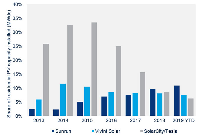 圖2:2013-2019年美國家庭光伏市場份額變化