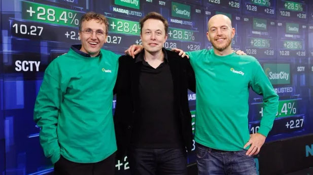 回到2004年,兩個(gè)曾與馬斯克共度童年的表兄弟,彼得·賴夫和林登·賴夫(Peter and Lyndon Rive),在賣掉自己創(chuàng)立的軟件公司后,正尋找新的“改變世界”的創(chuàng)業(yè)機(jī)會。馬斯克鼓動他們?nèi)ヌ剿魈柲苄袠I(yè),于是兩兄弟用2年時(shí)間學(xué)習(xí)知識、積累資源,并于2006年依靠馬斯克投入的1000萬美元?jiǎng)?chuàng)立了SolarCity公司,由馬斯克擔(dān)任董事長,林登·賴夫擔(dān)任CEO。