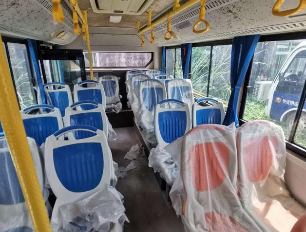 記者在走訪惠東縣城時(shí)看到,在惠東縣客運(yùn)站附近,粵惠運(yùn)輸在一片較為隱蔽的荒地租下的停車場(chǎng)里,至少有10輛南京金龍的純電動(dòng)公交車廢棄在草叢中。雖然車身布滿灰塵,但不難看出,車輛幾乎全新,記者隨意走進(jìn)幾輛未關(guān)車門的車內(nèi),可見車鑰匙或仍在駕駛座或掛在方向盤下的打火孔里,車內(nèi)座椅的薄膜套都未拆,地板幾乎沒有腳踏的痕跡。