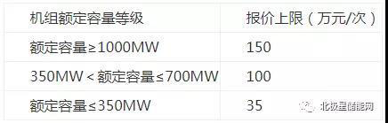 第三十八條 按機(jī)組額定容量等級(jí)對(duì)啟停調(diào)峰交易報(bào)價(jià)設(shè)置上限,具體如下: