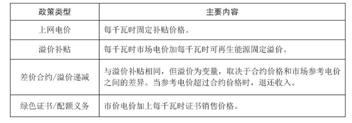依照歐盟可再生能源指令有關(guān)規(guī)定,各成員國根據(jù)國情制定了各自的國家可再生能源行動計劃和支持政策,其中絕大多數(shù)支持政策集中在發(fā)電行業(yè),包括上網(wǎng)電價、溢價補貼、差價合約、綠色證書等。歐洲可再生能源政策機制是激勵行業(yè)快速發(fā)展的關(guān)鍵。