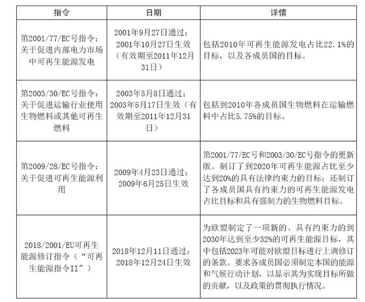 表2 歐盟可再生能源指令概述