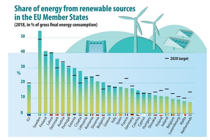 [2]Eurostat.Share of renewable energy in the EU up to 18.0%[EB/OL].2020.