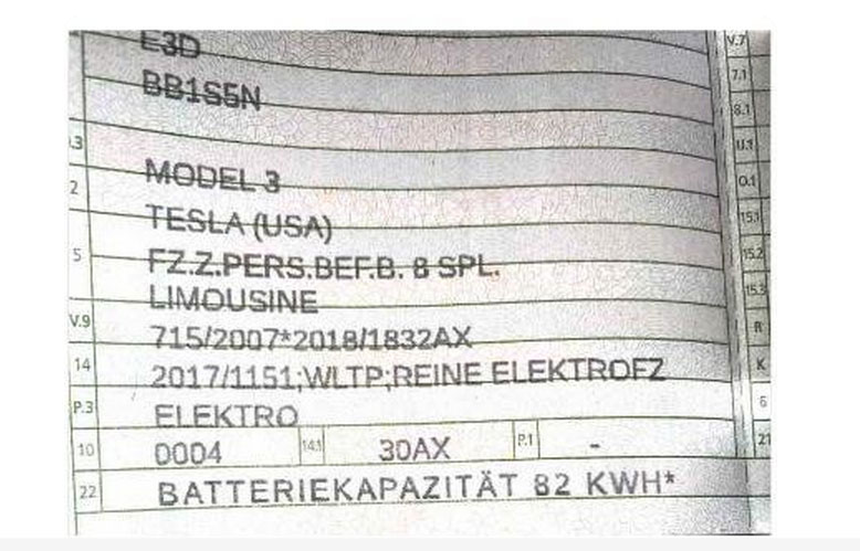 一份德文海關(guān)申報文件顯示,型號為Model 3的報關(guān)產(chǎn)品電池組容量為82kWh。據(jù)知情人士透露,這是特斯拉提前向歐洲消費者發(fā)放的2021款Model 3報關(guān)信息,特斯拉建議車主提前登記,從而確保車輛交付可以順利開展。部分車主表示,所購的Model 3約在11月底或12月才能提到。