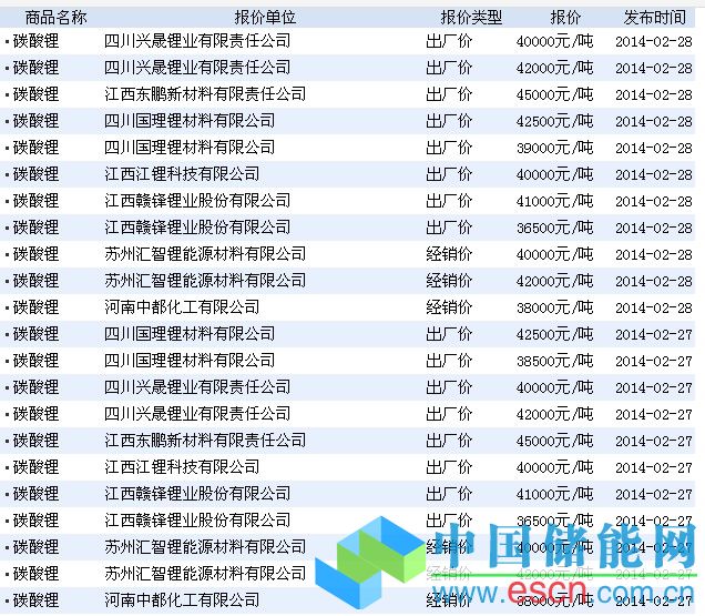 國(guó)內(nèi)主流碳酸鋰生產(chǎn)廠家產(chǎn)品報(bào)價(jià)