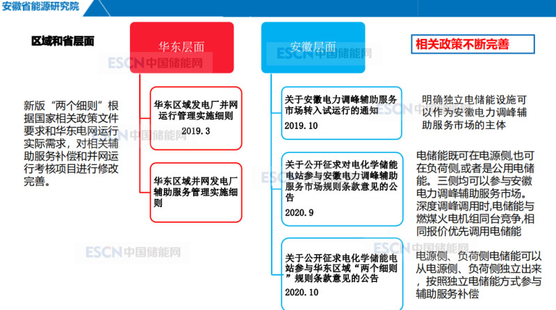 面臨機(jī)遇第二點(diǎn)就是有政策利好。國(guó)家層面,從2017年到今年陸續(xù)頒布了不少政策,《關(guān)于促進(jìn)儲(chǔ)能技術(shù)和產(chǎn)業(yè)發(fā)展的指導(dǎo)意見(jiàn)》,《關(guān)于促進(jìn)儲(chǔ)能技術(shù)與產(chǎn)業(yè)發(fā)展的指導(dǎo)意見(jiàn)2019-2020 年行動(dòng)計(jì)劃》、《關(guān)于做好2020年能源安全保障工作的指導(dǎo)意見(jiàn)》等都是有非常好的指導(dǎo)作用。華東層面,新版“兩個(gè)細(xì)則”根據(jù)國(guó)家相關(guān)政策文件要求和華東電網(wǎng)運(yùn)行實(shí)際需求,對(duì)相關(guān)輔助服務(wù)和并網(wǎng)運(yùn)行考核項(xiàng)目進(jìn)行修改完善。《關(guān)于安徽電力調(diào)峰輔助服務(wù)市場(chǎng)轉(zhuǎn)入試運(yùn)行的通知》明確獨(dú)立電儲(chǔ)能設(shè)施可以作為安徽電力調(diào)峰輔助服務(wù)市場(chǎng)主體?!蛾P(guān)于公開(kāi)征求對(duì)電化學(xué)儲(chǔ)能電站參與安徽電力調(diào)峰輔助服務(wù)市場(chǎng)規(guī)則條款意見(jiàn)的公告》明確電儲(chǔ)能既可以在電源側(cè),也可以在負(fù)荷側(cè),或者是共用電儲(chǔ)能;三側(cè)均可以參與安徽電力調(diào)峰輔助服務(wù)市場(chǎng),深度調(diào)峰調(diào)用時(shí),電儲(chǔ)能與燃煤火電及組同臺(tái)競(jìng)爭(zhēng),相同報(bào)價(jià)優(yōu)先調(diào)用電儲(chǔ)能。《關(guān)于公開(kāi)征求電化學(xué)儲(chǔ)能電站參與華東區(qū)域“兩個(gè)細(xì)則”規(guī)則條款意見(jiàn)的公告》,規(guī)定電源側(cè)、負(fù)荷側(cè)儲(chǔ)能可以從電源側(cè)、負(fù)荷側(cè)獨(dú)立出來(lái),按照獨(dú)立電儲(chǔ)能方式參與輔助服務(wù)補(bǔ)償。