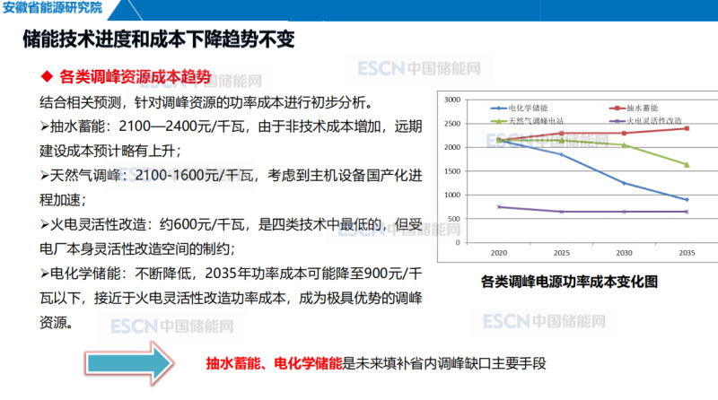 回到安徽省調(diào)峰缺口問(wèn)題,考慮到安徽省豐富的抽蓄站址資源,抽蓄、電化學(xué)儲(chǔ)能是未來(lái)一定時(shí)期內(nèi)填補(bǔ)省內(nèi)調(diào)峰缺口主要手段。