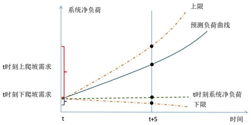 一是引入爬坡類產(chǎn)品。爬坡類產(chǎn)品主要針對(duì)未來高比例可再生能源接入的電力系統(tǒng)中,由于可再生能源發(fā)電資源的臨時(shí)短缺(例如太陽落山等),對(duì)常規(guī)機(jī)組出力提出快速爬坡的需求。爬坡類產(chǎn)品由調(diào)節(jié)性能較好的發(fā)電機(jī)組提供,例如燃?xì)鈾C(jī)組、抽水蓄能等。美國MISO、SPP、CAISO等電力市場(chǎng)已經(jīng)建立了短期爬坡交易機(jī)制。美國加州電力市場(chǎng)靈活爬坡交易機(jī)制示意如圖2所示。